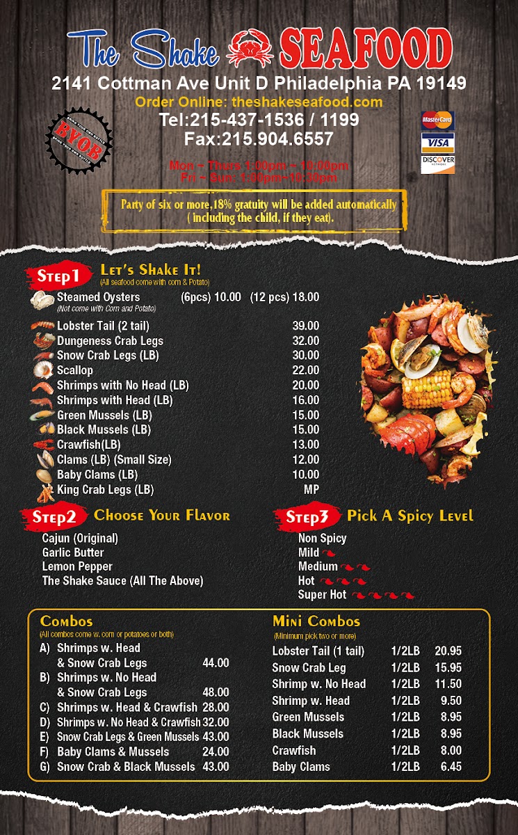 The Shake Seafood Menu